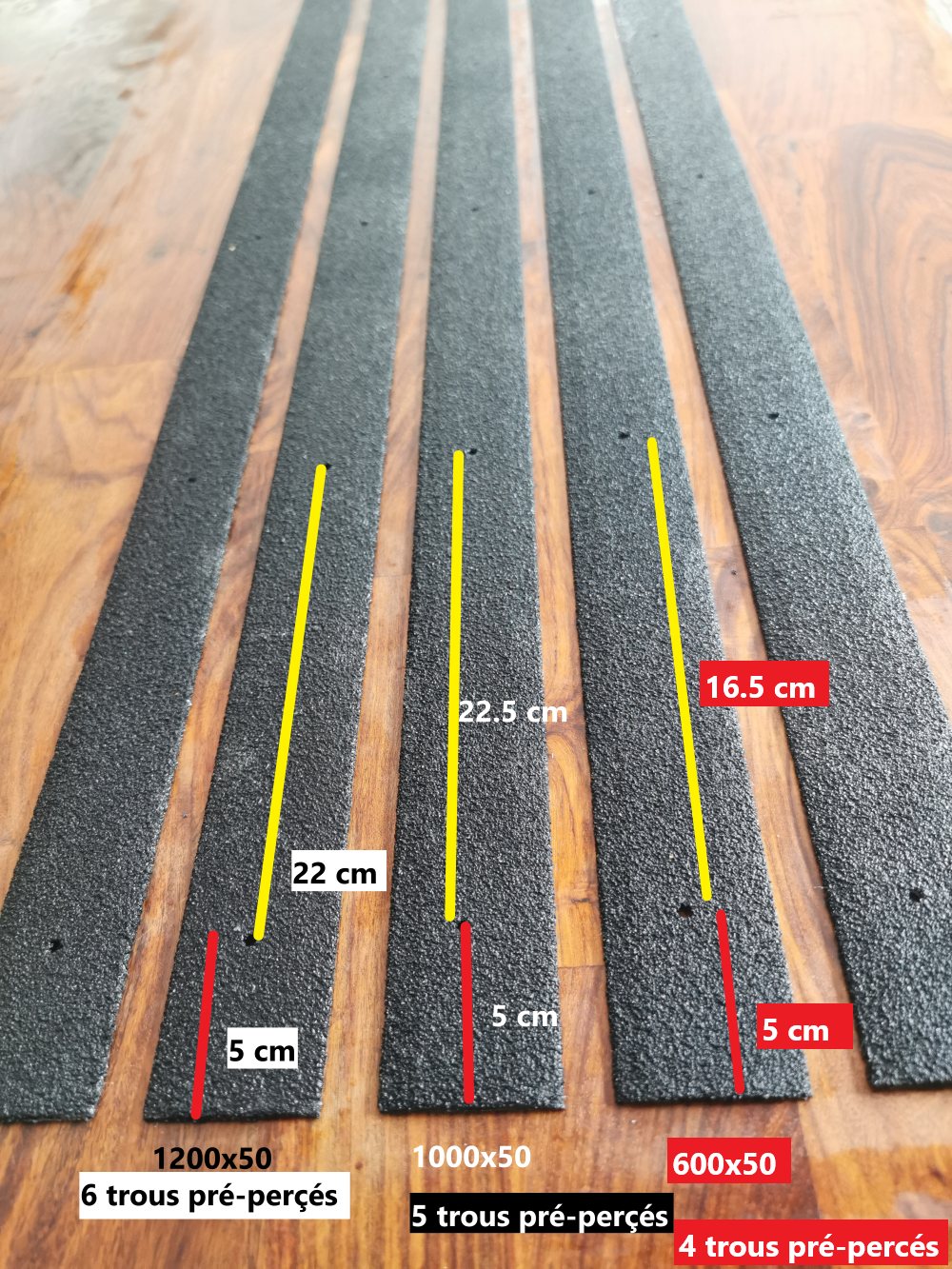 Performance antidérapante | Conçues pour sécurité maximale, même en conditions humides ou huileuses, grâce à une surface texturée optimisée par nos matériaux spécialisés. | Certaines offres standard (ex : ruban adhésif basique) offrent un grip acceptable mais moins performant sur surfaces très glissantes ou très usées. |